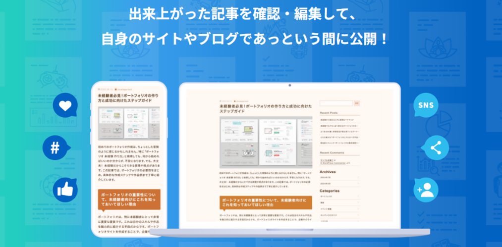 ). It provides comprehensive support for writing, from article planning and competitor research to drafting and editing. One of its key features is a patented SEO research function (※2) that enables the automatic generation of articles that are highly likely to be evaluated favorably by search engines. This function is available at one of the lowest price levels in the industry (※3), helping to solve article creation challenges for a wide range of users, from blogging beginners to corporate owned media managers and freelancers.