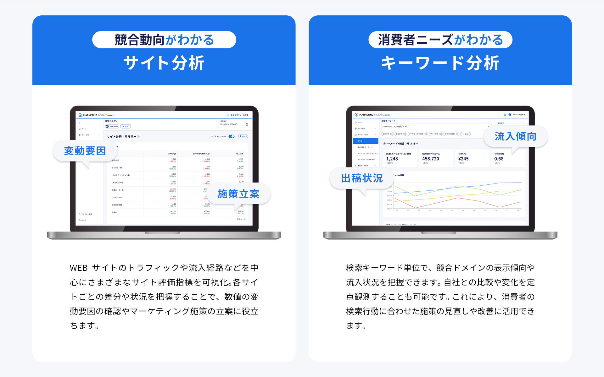“MARKETING INSIGHT byGMO” is a competitive analysis tool that provides multifaceted insights into user behavior and access trends for any chosen website.
