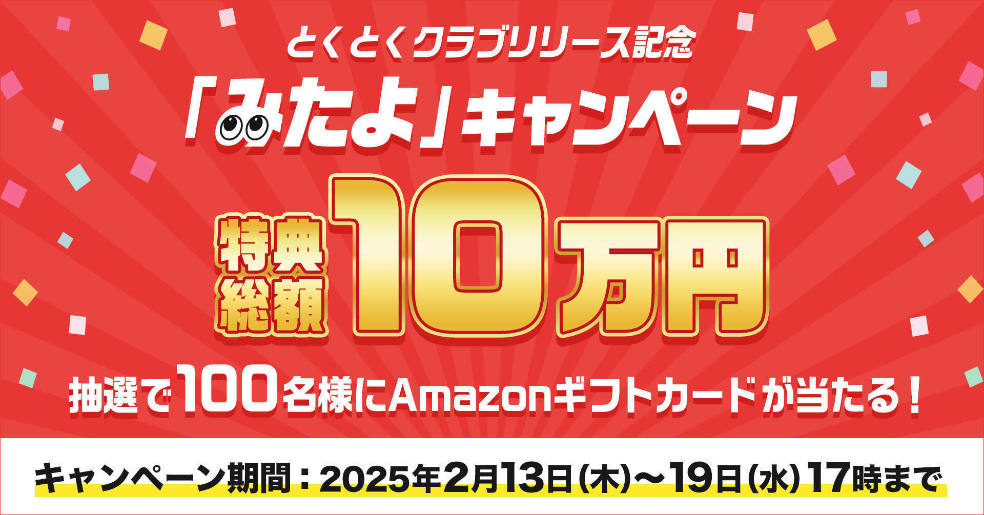To celebrate the launch of “Tokutoku Club by GMO,” we will be running the “‘Mita yo’ Campaign,” where 100 winners will be selected by lottery to receive Amazon gift cards.