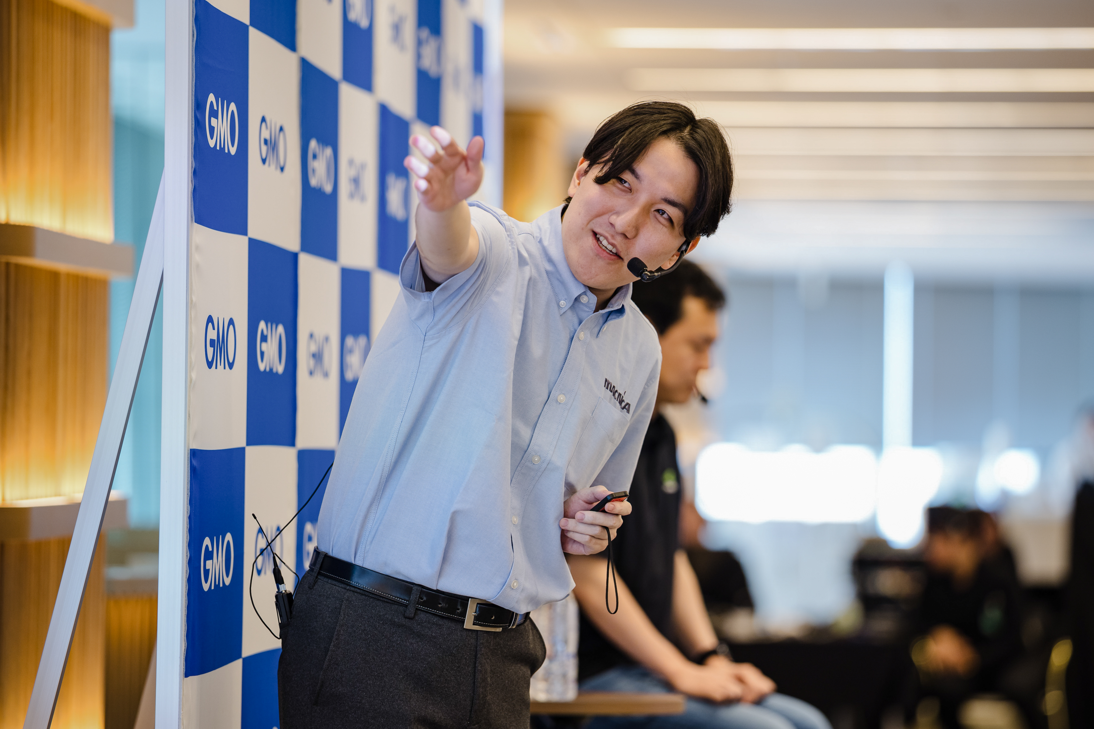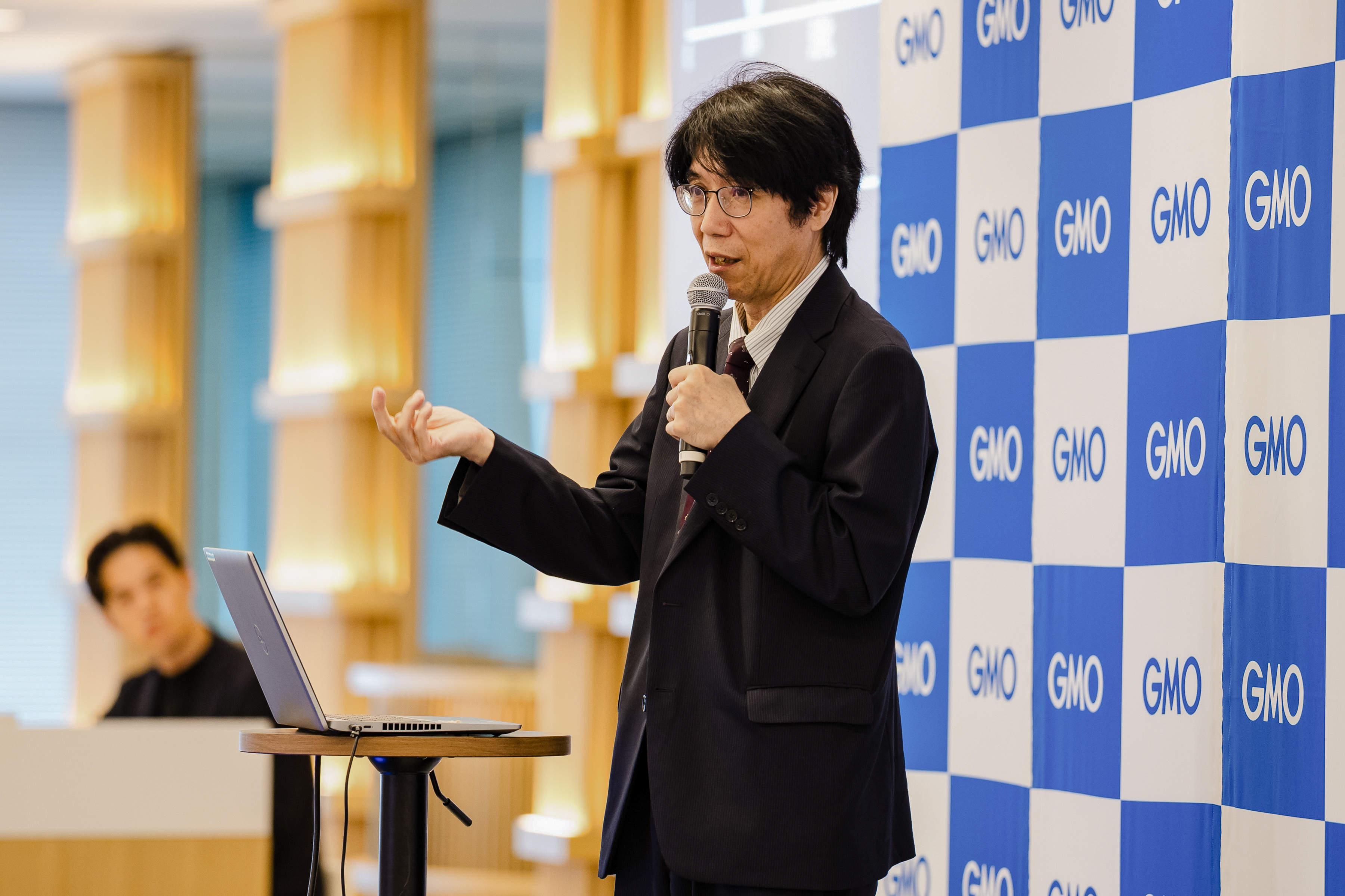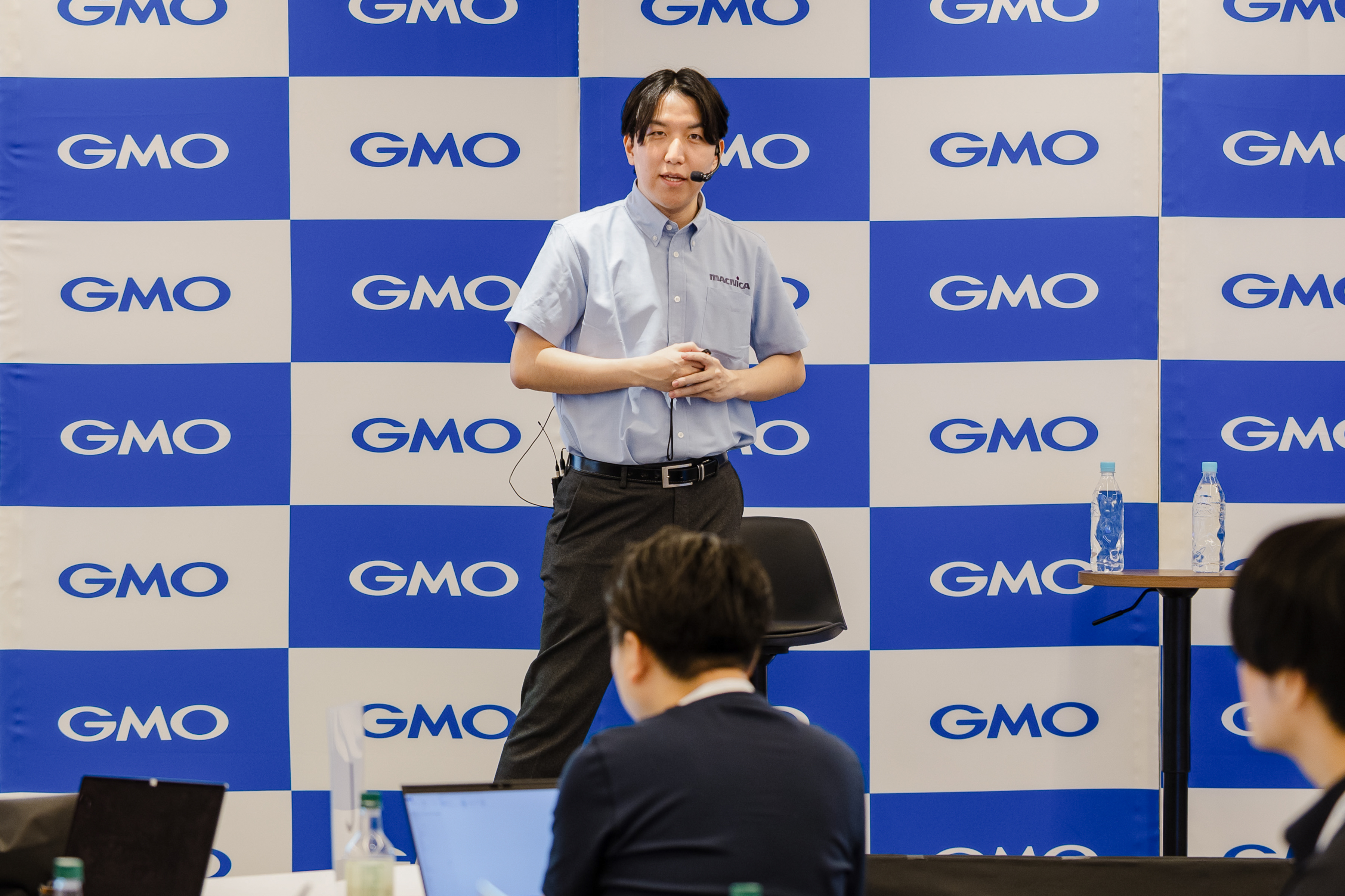 ▲Mr. Ono from Macnica explaining that a demonstration was conducted using the “GMO GPU Cloud” environment equipped with NVIDIA’s high-performance GPU “H200”