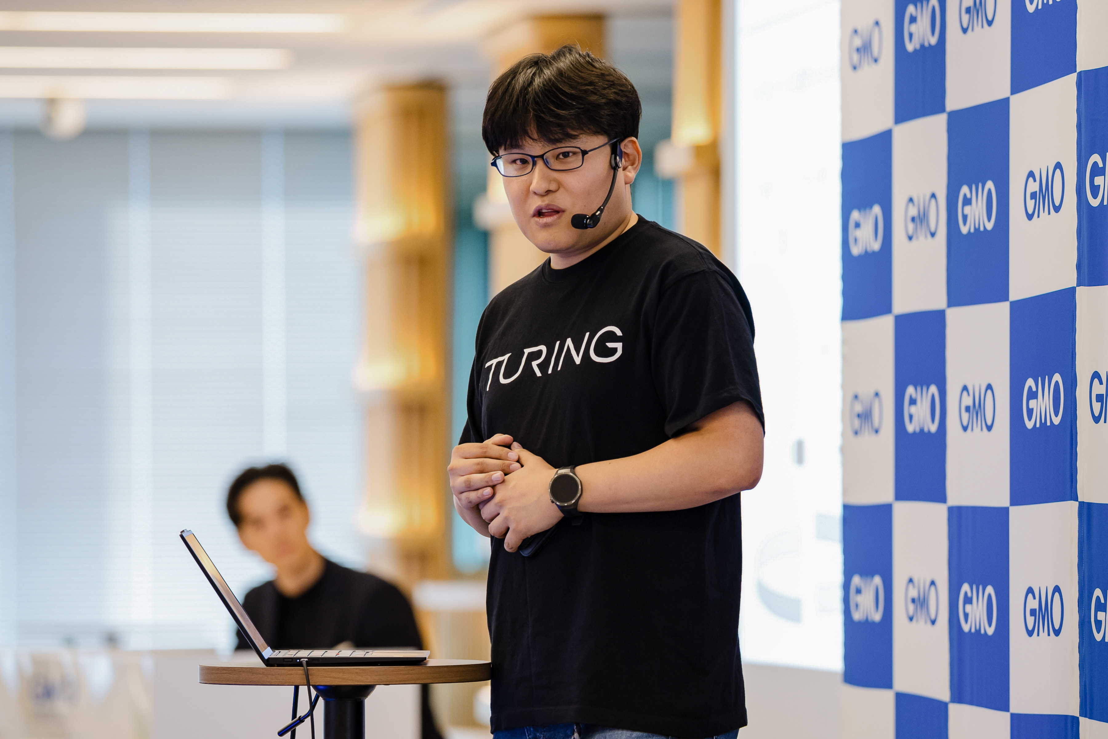 Representing Turing, which is advancing technological development for autonomous driving AI with the goal of achieving Level 5 autonomous driving—fully autonomous vehicles—Mr. Watanabe, who is responsible for designing and building the computational infrastructure required for development, took the stage.
