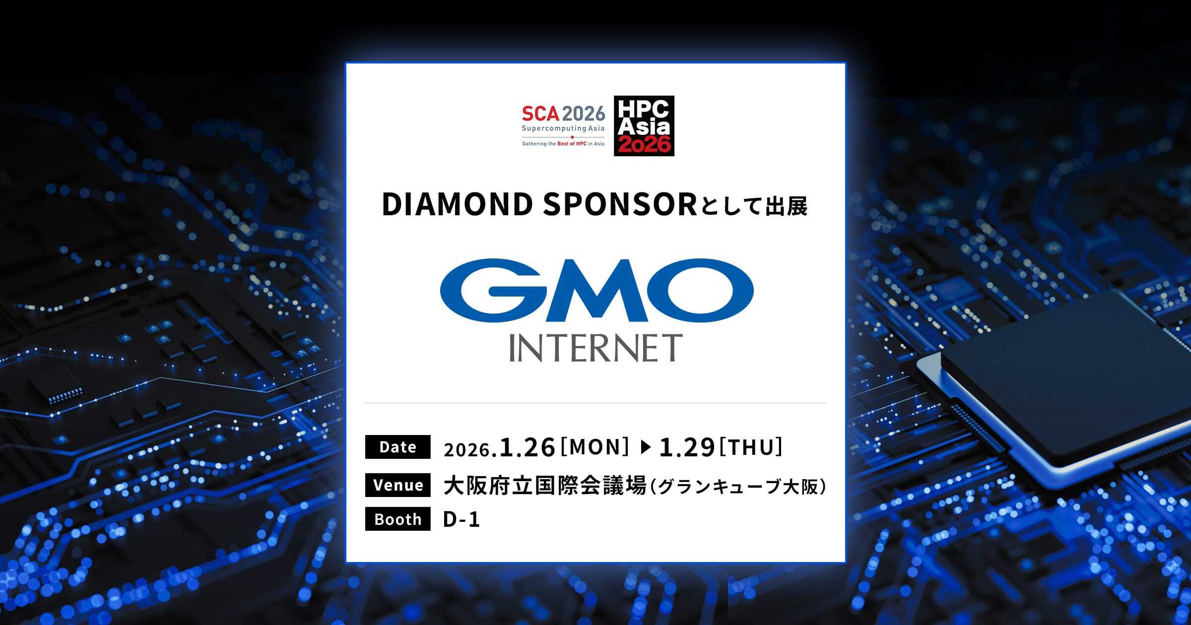 HPCやAI技術は、研究・産業・社会のあらゆる領域で基盤技術となりつつあります。GMOインターネットは、国内で培った高性能GPUクラウド技術と産業における実利用から得た知見を、アジアをはじめとする国際的な技術者・研究者・企業と共有し、社会実装の足掛かりとなる技術交流を通じて、新たな価値を生み出すことを目指しています。このような背景から、今回ダイヤモンドスポンサーとして初出展し、進化の早いAI技術を支える高性能計算基盤の提供者として、国際的な技術交流と共創の場に参画します。